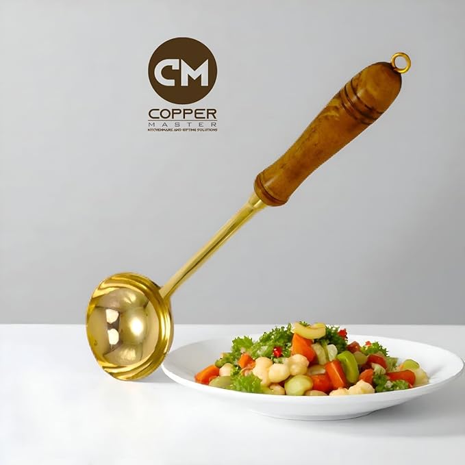 Relish delicious cuisine in Indian style. This Brass Lead Free Spoon is a centerpiece cookware item for Indian food. Cook Indian dishes for your friends and family in this unique and ethnic looking centerpiece. With this cookware utensil, your Indian style cookware experience goes several notches up. This Ladle is made of brass. it a Royal look and helps in holding the pan firmly. It is perfect for cooking and Serving dishes. This cookware utensil is of classy finish and gives an elegant look to kitchen decor. Used for preparing and cooking food or Good serving food. The superb design of the cookware makes it a great addition to your antique dinnerware collection.. Keep Brass pieces as clean as possible.