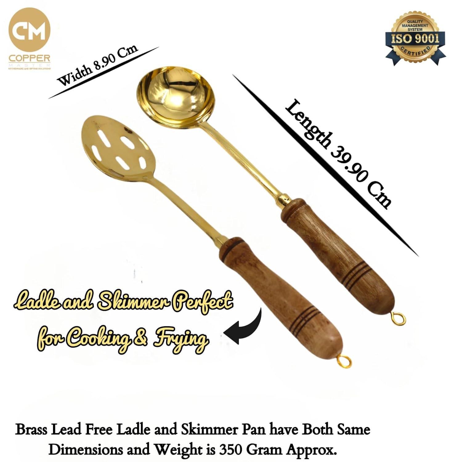 Pure Brass Lead-Free Skimmer Pan Spoon & Ladle Set (14.5 Inch, Set of 2)
