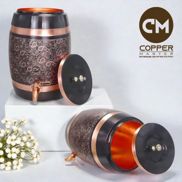 Copper-Master Barrel Matka Vintage Carving 9 Litre Copper Water Dispenser (Matka) Container Pot with Pure Copper and Ayurvedic Health Benefits (9000 ml)